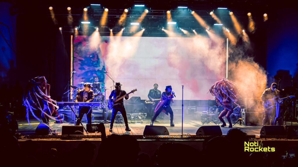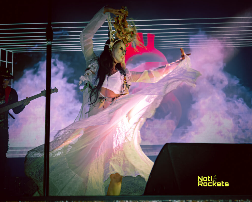 El turno de La Castañeda fue un despliegue de arte escénico y fuerza musical. Con una puesta en escena impactante, juegos de luces, máscaras y dramatismo visual, la banda transportó al público a su universo místico y provocador.