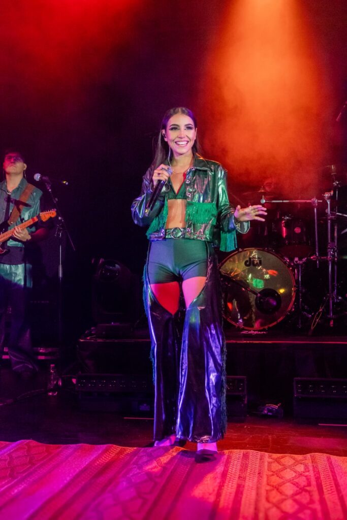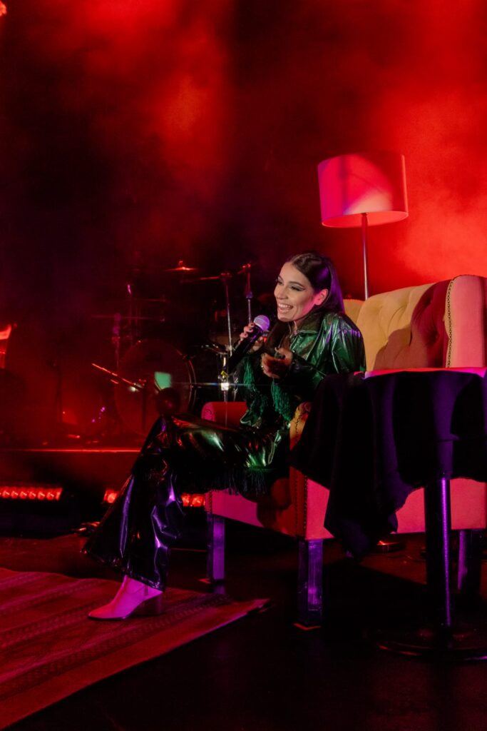 Desde el primer acorde, la cantante tapatía dejó claro que su propuesta va más allá de interpretar canciones: su música es un espejo en el que sus seguidores pueden reflejarse. En el escenario, un sillón que evocaba la comodidad del hogar sirvió como testigo de momentos de diálogo sincero con su público, donde cada palabra y melodía construía un puente entre artista y espectador.