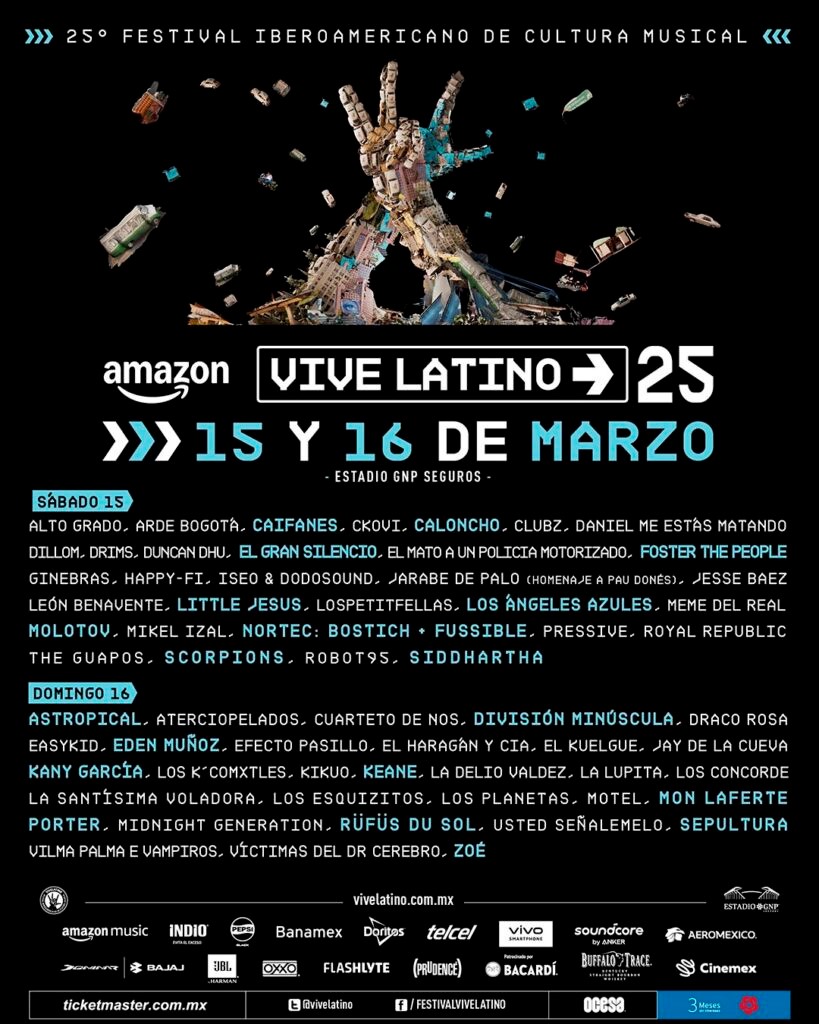 El Festival Vive Latino 2025, en su vigésima quinta edición, contará con una diversa gama de artistas que van desde el regional mexicano hasta bandas internacionales de indie rock y propuestas electrónicas. La inclusión de Sepultura aporta un toque de metal y heavy metal al cartel, compartiendo escenario con bandas como The Scorpions, quienes también regresan al festival tras su cancelación en la edición anterior.