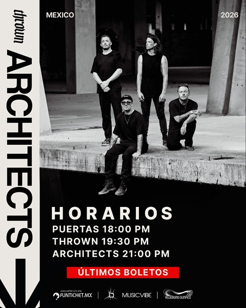 Esta presentación de Architects en México no viene sola. La banda sueca Thrown ha sido confirmada como el acto de soporte, garantizando que la energía se mantenga a tope desde el primer minuto. Con su propuesta visceral, Thrown es el complemento perfecto para preparar el ambiente antes de que Architects suba al escenario a presentar los himnos de sus más recientes producciones y repasar los clásicos que los convirtieron en una potencia mundial. La combinación de ambas bandas asegura que el Velódromo Olímpico sea testigo de un despliegue de potencia sonora sin precedentes.